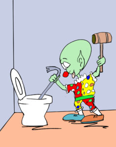This is CreativeLove. Creative Love is very creative, very good at thinking outside the box. The toilet is plugged up and CreativeLove has a plan to unplug the toilet. What do you think of CreativeLove's Plan?